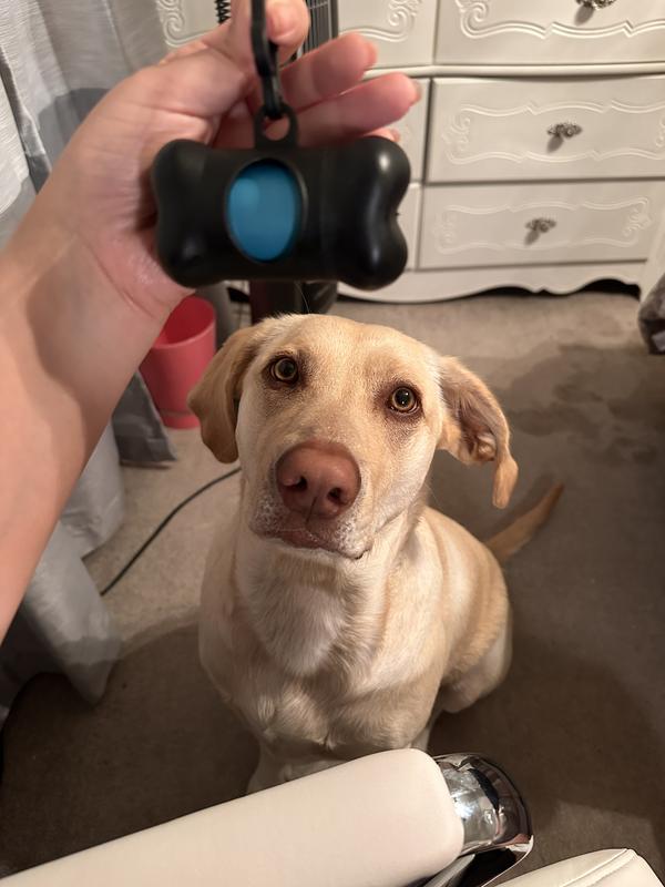 The So Phresh Black Bone Waste Bag Dispenser with Pawprint Refill Rolls makes it easy to quickly bag smelly situations, so nothing stinks up your walks together. Including 2 rolls of leak-resistant waste bags made of 30% recycled material, this dispenser is designed with a high-quality carabiner clip that fastens onto leashes, belt loops, or bags.