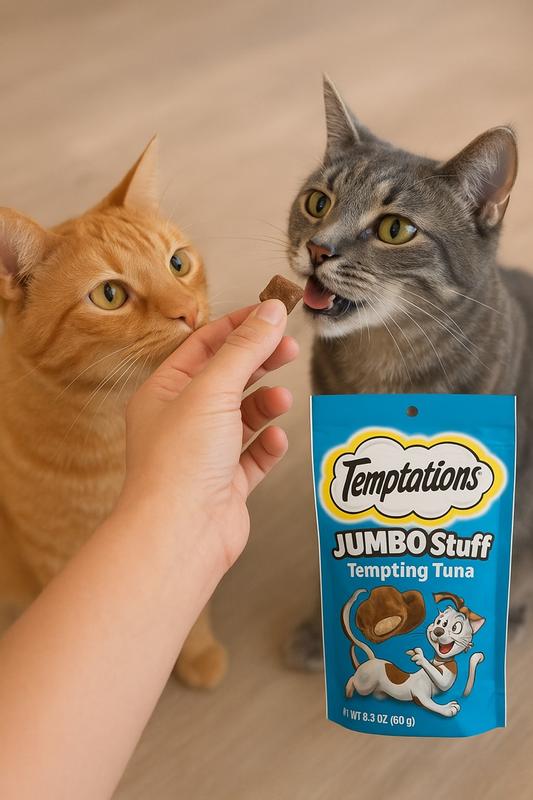 - - Jumbo-Sized Filling: Temptations Jumbo Stuff cat treats are bigger than Classic Temptations Cat Treats, which means there is more irresistible filling they love
