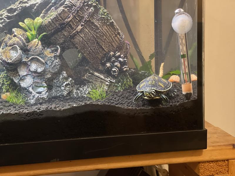 I have a red eared slider in my pond with my koi. He doesn't like to come out and eat. Can I put the pellets in the water, or will my fish gobble it