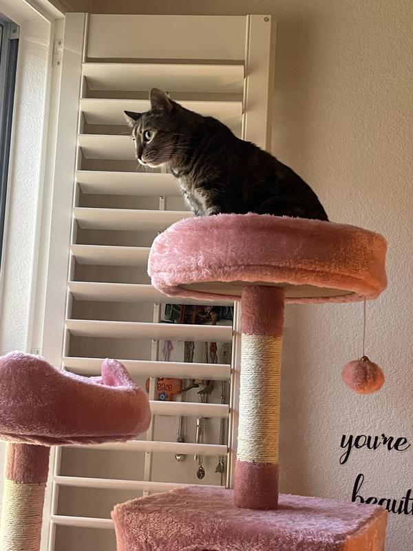 - - Comes with a safety strap to help prevent damage and injury from intensive jumping and leaping by securing the cat tree to the wall