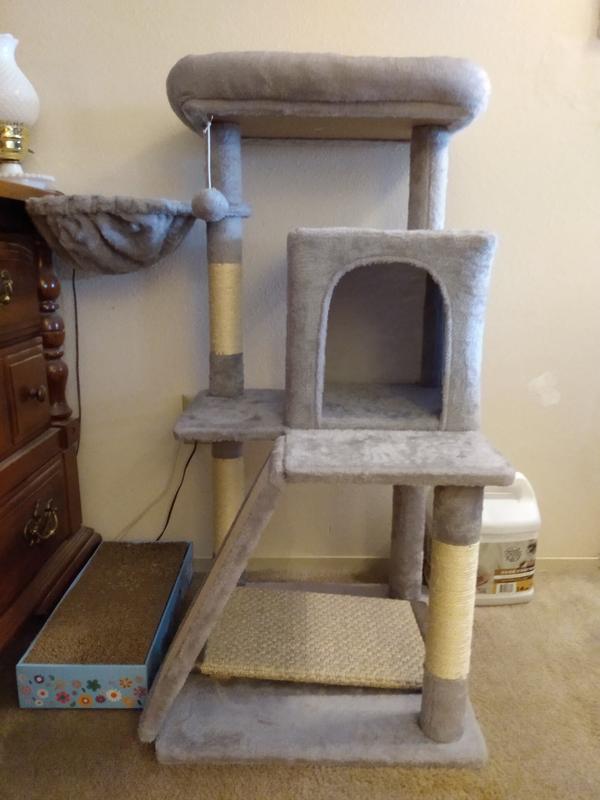 - - Has a scratching board and four posts to let them sharpen their claws