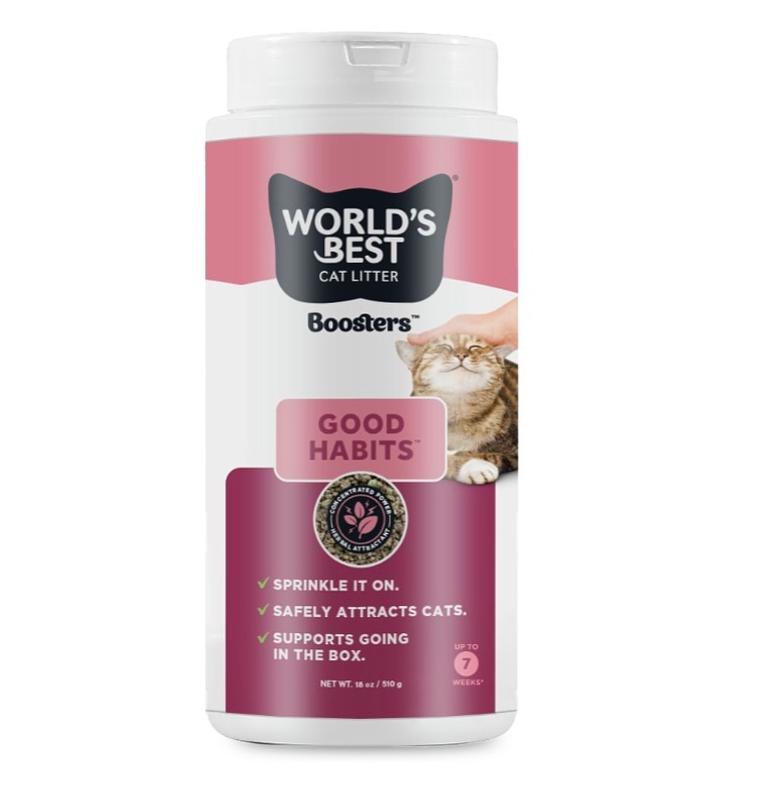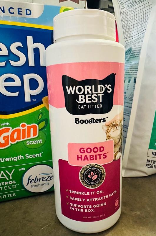 - - ATTRACTS TO LITTER BOX: World's Best Cat Litter Boosters Good Habits is a natural and sustainable cat litter additive that encourages cats to use the litter box and helps avoid accidents. Simply sprinkle it on to your usual litter to release a natural scent that safely attracts cats and supports going in the box every time