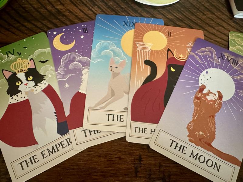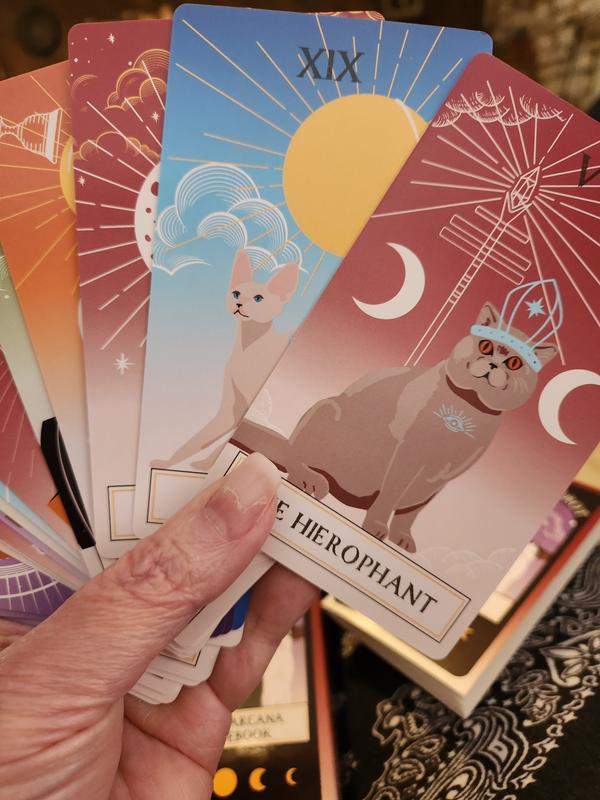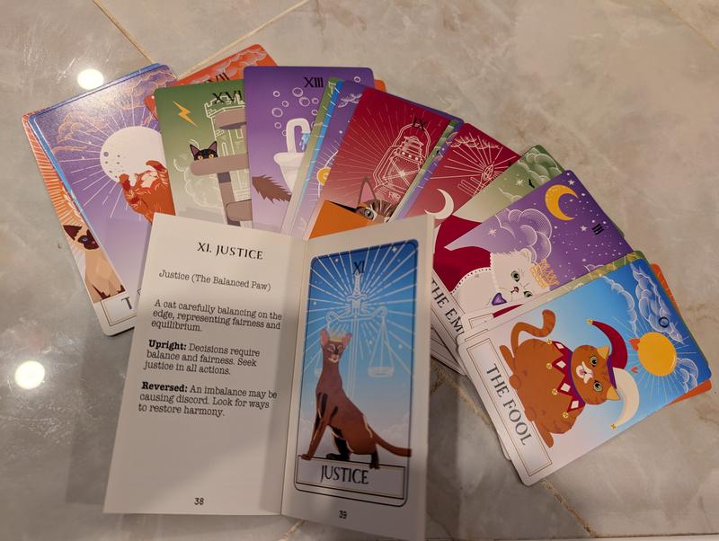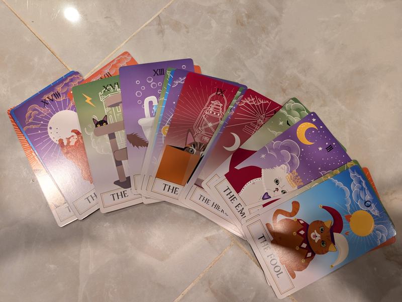 Put a cat lover's spin on the classic Tarot experience with this cat-themed Tarot card deck, complete with 22 Major Arcana cards with cat designs. Whether you're a Tarot beginner or a long-time divinator, you'll love this funky play on traditional Tarot cards.