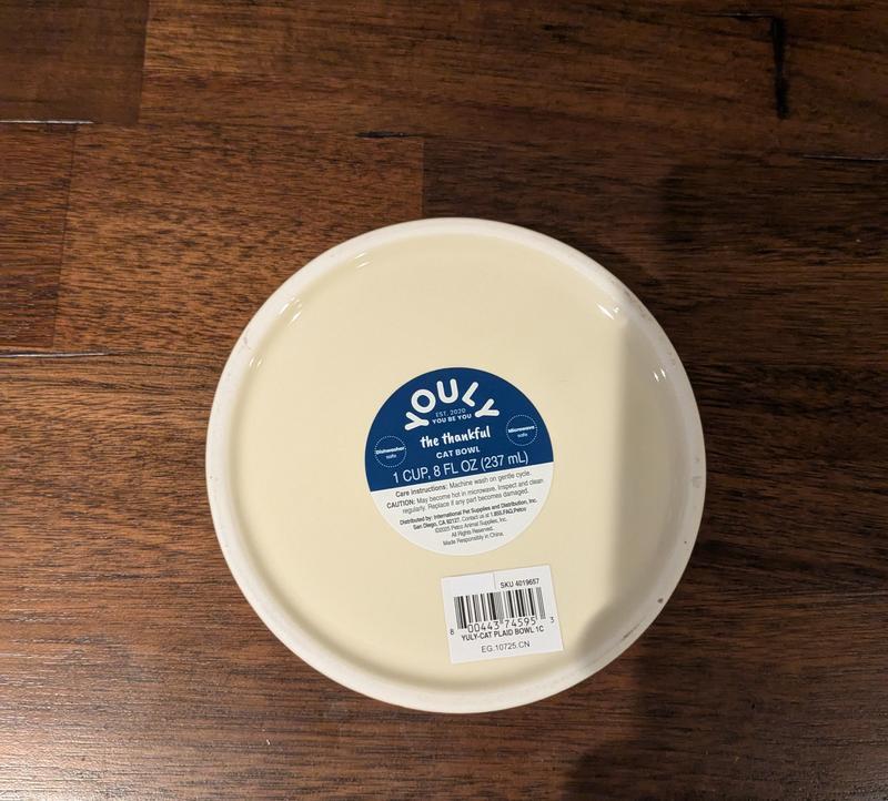 YOULY Plaid Ceramic Cat Bowl, 1 Cup