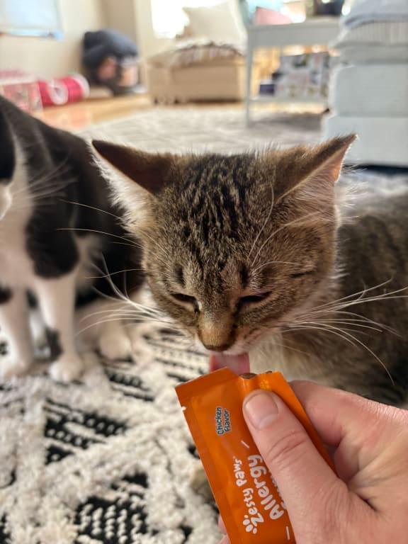 Cats love living their best lives! But sometimes, conquering their seasonal allergies is no small feat. So, it's only natural that loving pet parents like you look for supplements to help your feline fave feel super good again! If you are ready to give your cat the "upper paw" against those pesky seasonal allergies, try Allergy & Immune Cat Mousse and prepare to let out a sigh of sweet relief! Every squeeze of this delicious mousse includes EpiCor Pets, Fish Oil (for omega fatty acid support), Quercetin, Lysine, Astragalus Root, and Bromelain. Together, these wholesome ingredients support their seasonal allergies, immune system function, skin health, and antioxidant levels.